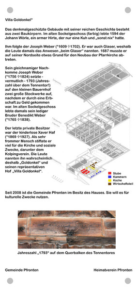 An besonders geschichtsträchtigen Objekten und Orten in Pfronten sind Stelen aufgestellt, die den Betrachter über die Geschichte des Objektes informieren sollen.