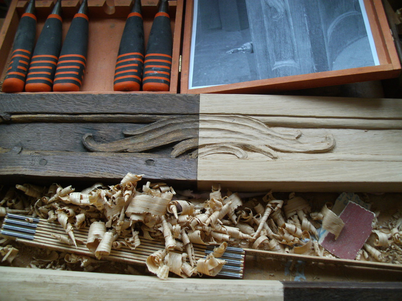 Schon bei der ersten Sichtung der Teile war uns klar, welches Juwel uns da Mang gebracht hatte. Die alte Schreinerarbeit aus massiver Eiche mit feinen Schnitzereien haben uns in Ehrfurcht vor der alten Handwerkskunst gesetzt. Wenn man bedenkt, dass es vor ein paar hundert Jahren noch keine Maschinen zur Bearbeitung, und auch noch keinen Leim gab, d.h. eine exakte Verarbeitung war Voraussetzung, um die Einzelteile zusammen-zufügen. Auch die aufwändigen Schnitzereien, welche in sich schlüssig, aber nicht spiegelgleich sind, zeugen von höchster Handwerkskunst. Ein Beichtstuhl in dieser Qualität wäre heute kaum mehr bezahlbar und viel-leicht auch nicht mehr machbar, da inzwischen sehr viel an handwerklicher Fertigkeit verloren gegangen ist.