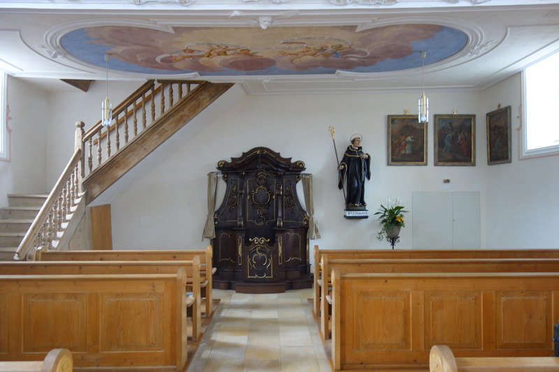 Der Beichtstuhl, der in meinem Holzlager lagerte, ließ mir keine Ruhe mehr, und so fragte ich unseren damaligen Pfarrer Leumann, ob er nicht eine Idee hat, wo so ein alter Beichtstuhl in Pfronten einen Platz finden könnte. Da er aber momentan keinen Bedarf für einen Beichtstuhl sah, blieben die Teile vorläufig einfach weiter in meinem Holzlager liegen.