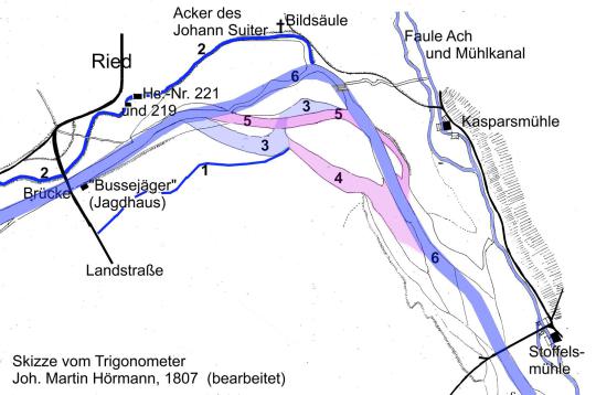 3 Flussbett am 25. Augsut 1807 4 Flussbett am 1. September 1807